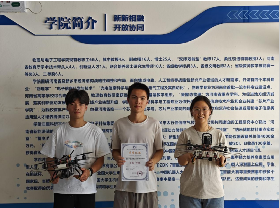 在本次大赛中,新乡学院物理与电子工程学院的14名参赛学生,在申小萌、郭书哲老师的指导下,凭借出色的技术能力和团队合作精神,在多个赛项中脱颖而出,在“机器人任务挑战赛(微型无人机)”赛项中荣获省级一等奖、二等奖各1项,顺利进入国赛,在“机器人创新赛”和“人工智能创新赛”赛项中荣获省级三等奖3项。