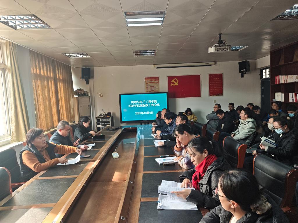 为深入推进全面从严治党,强化警示教育震慑作用,切实筑牢学院党员干部廉洁自律思想防线,12月9日下午物理与电子工程学院在会议室召开2025年以案促改工作会议,全体教职工参加会议,会议由党委书记张晓蕊主持